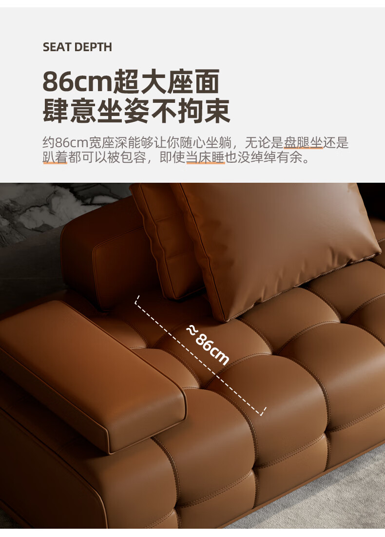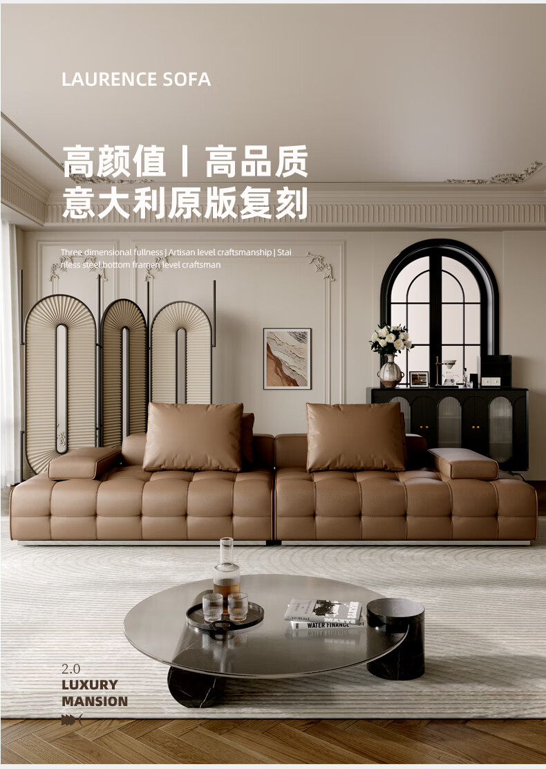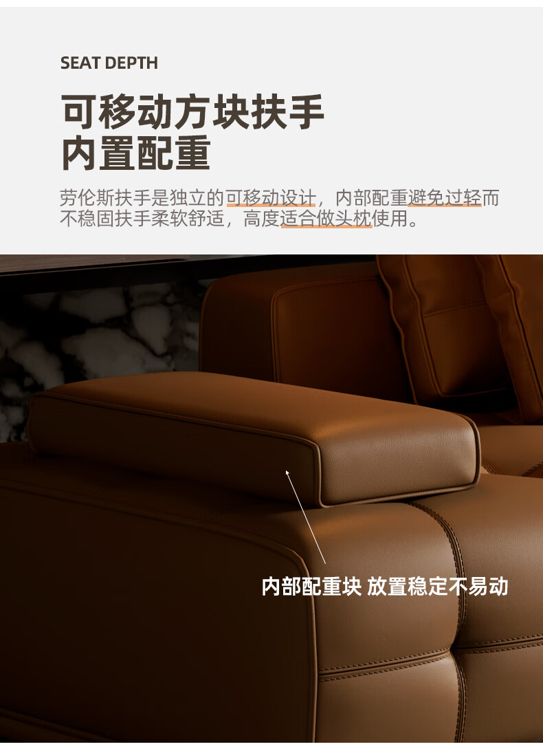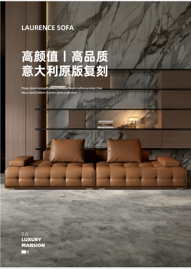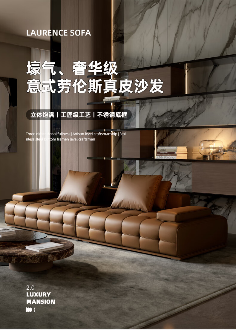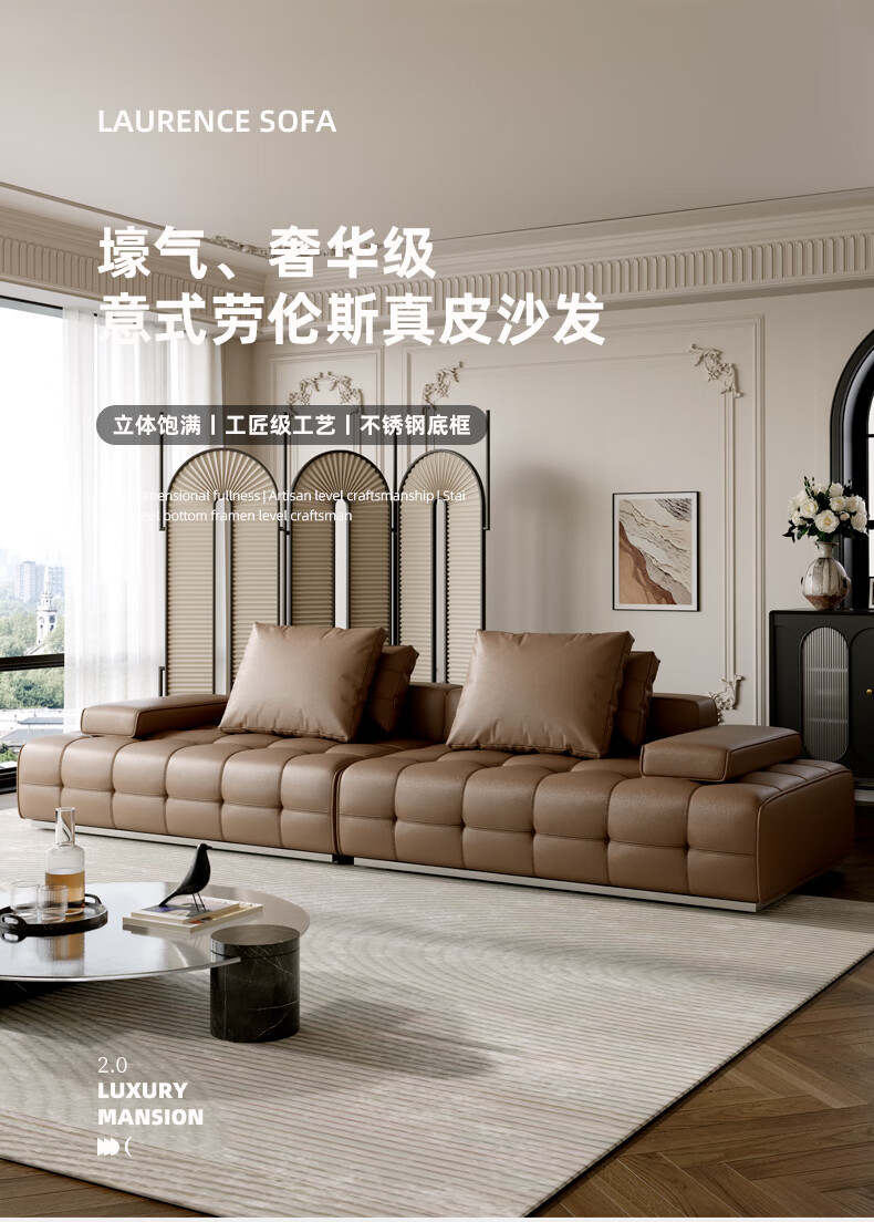 劳伦斯真皮沙发客厅大平层别墅沙发组合 2.80米双人位【55D紫罗兰海绵/实木底框】