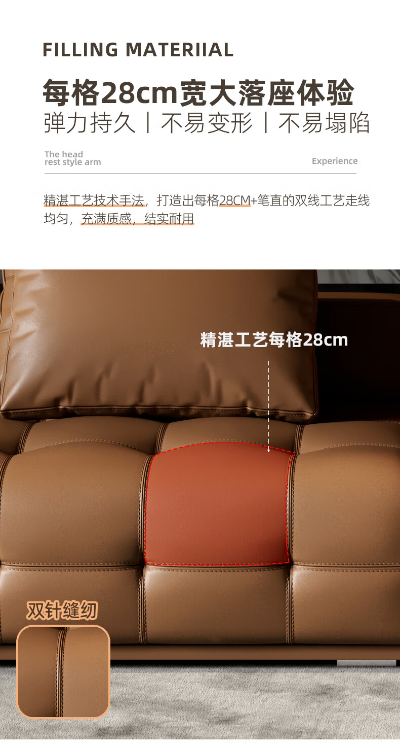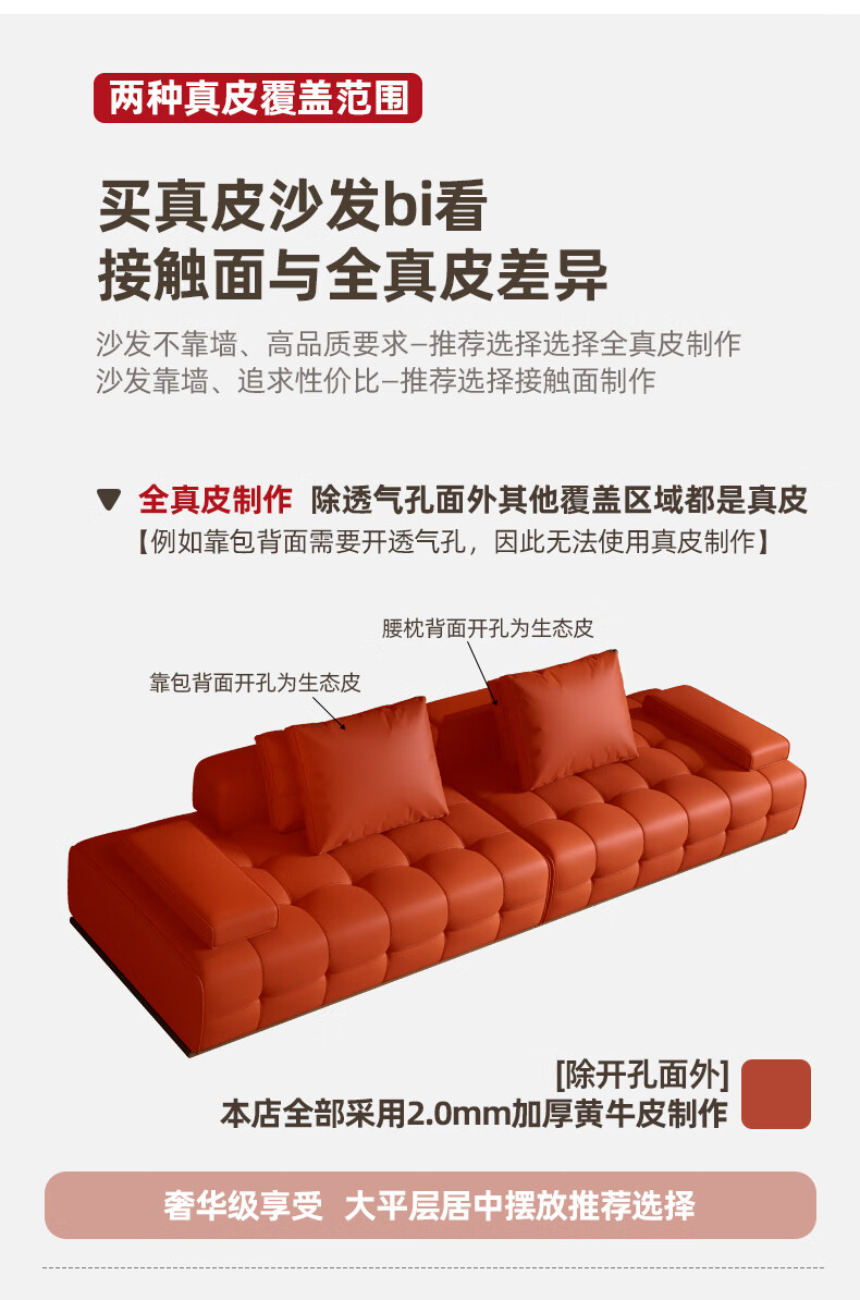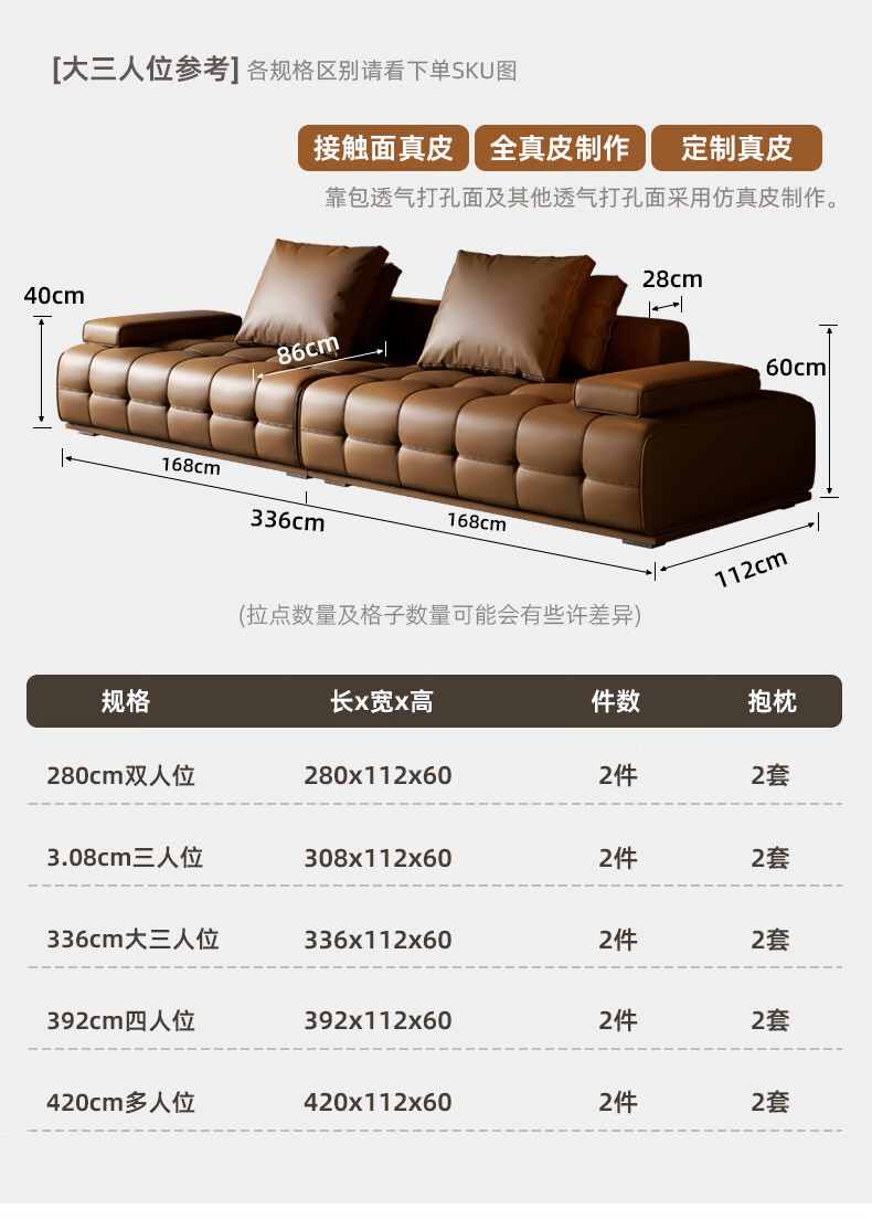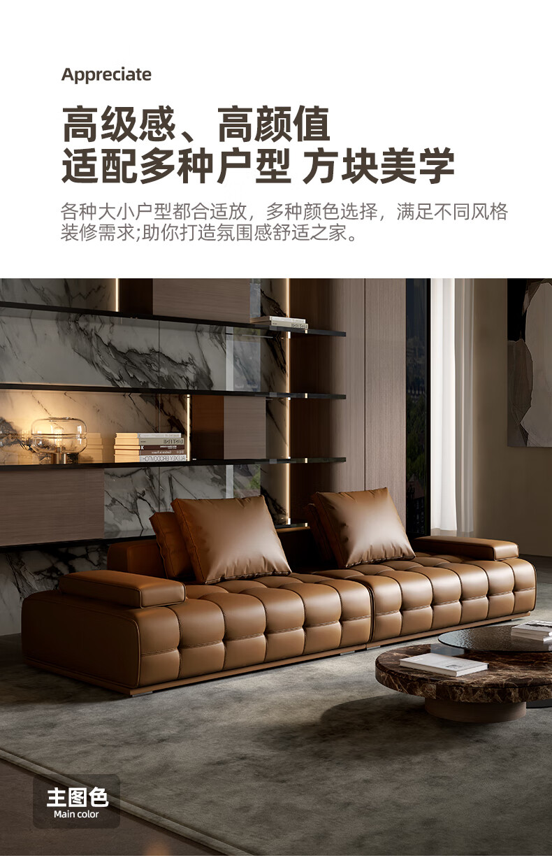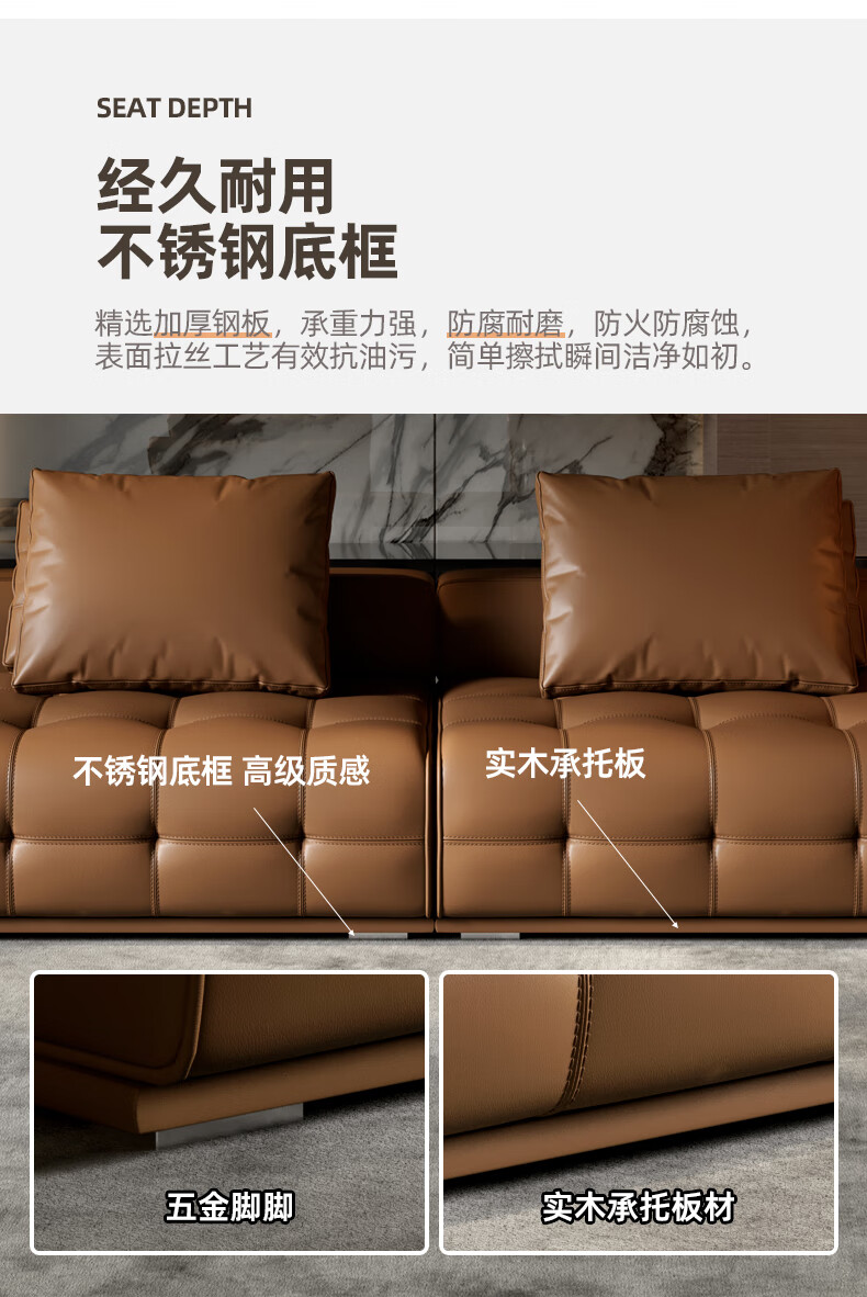 劳伦斯真皮沙发客厅大平层别墅沙发组合 2.80米双人位【55D紫罗兰海绵/实木底框】