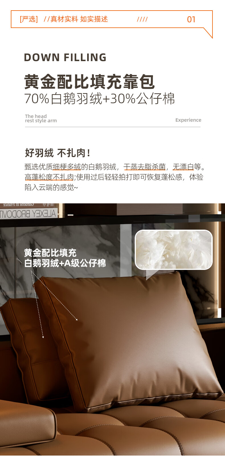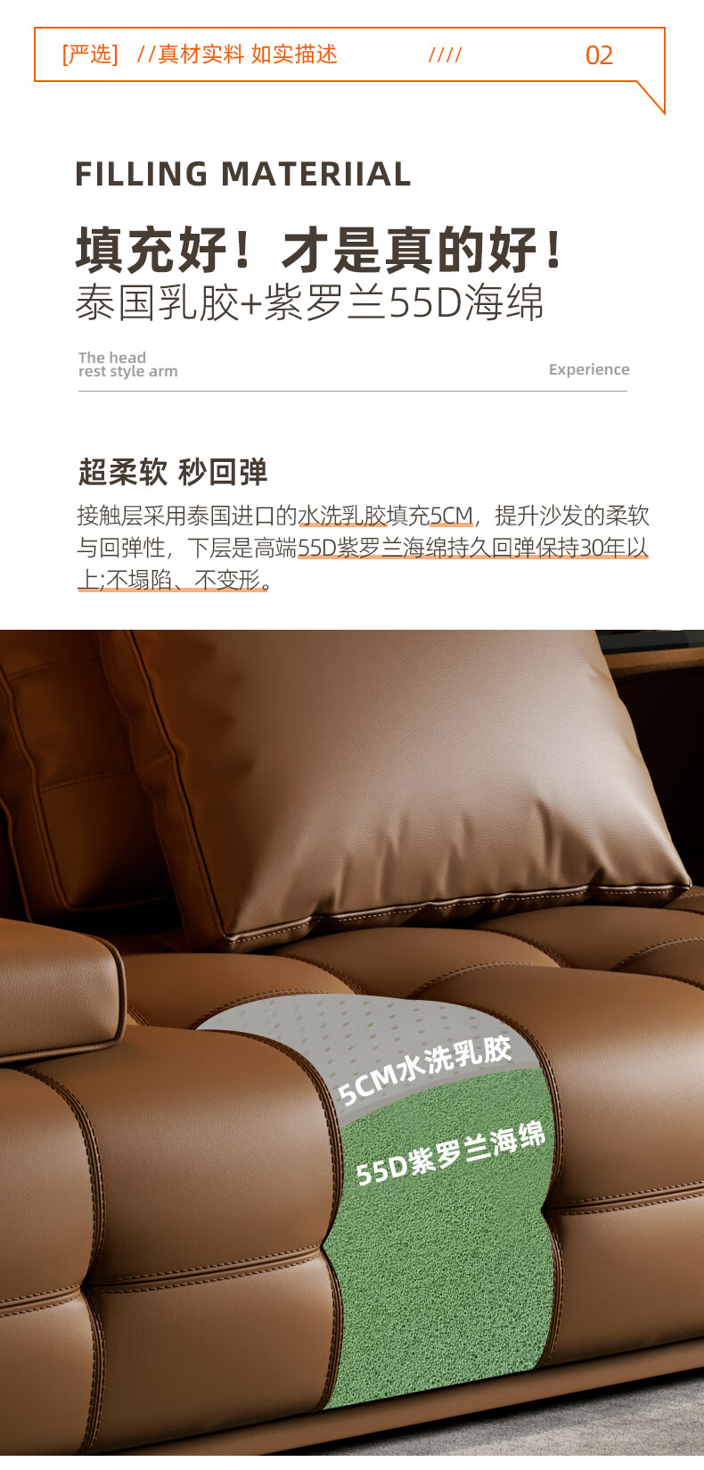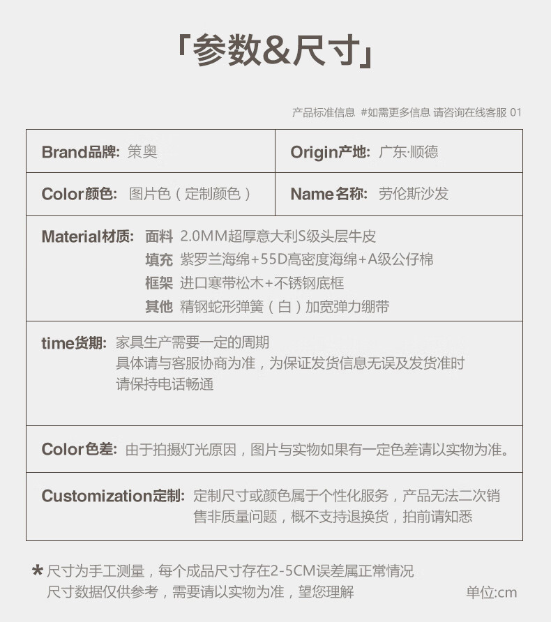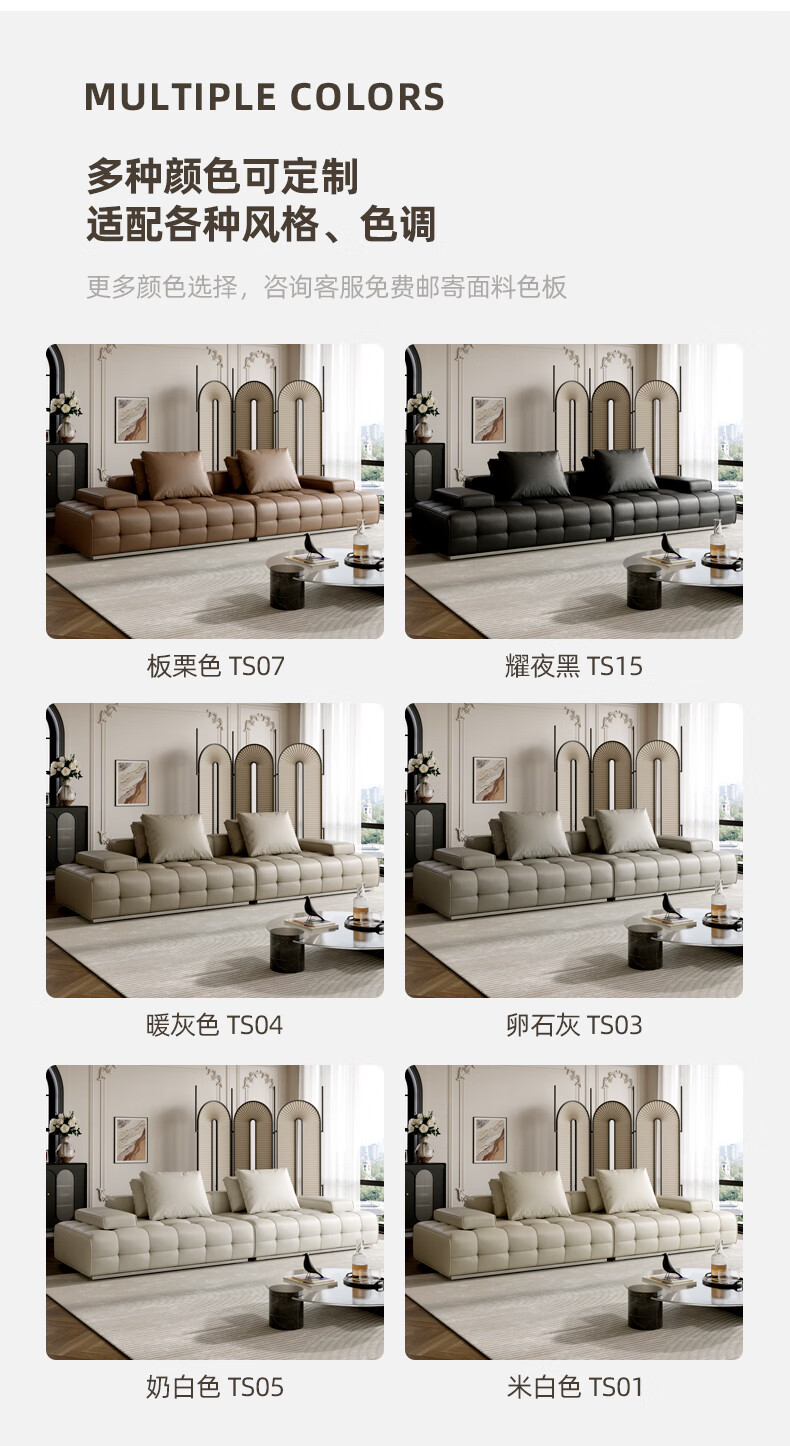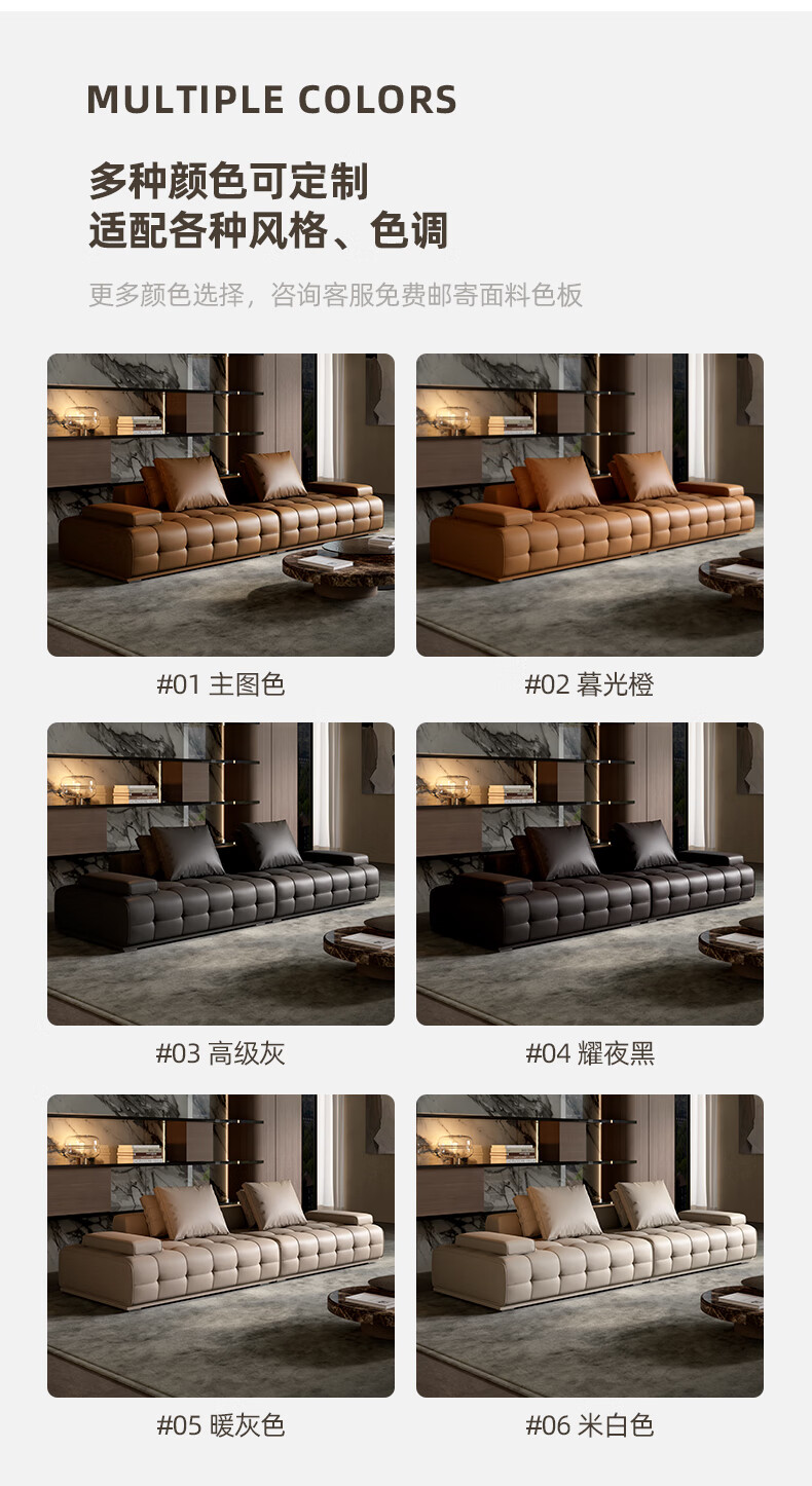 劳伦斯真皮沙发客厅大平层别墅沙发组合 2.80米双人位【55D紫罗兰海绵/实木底框】