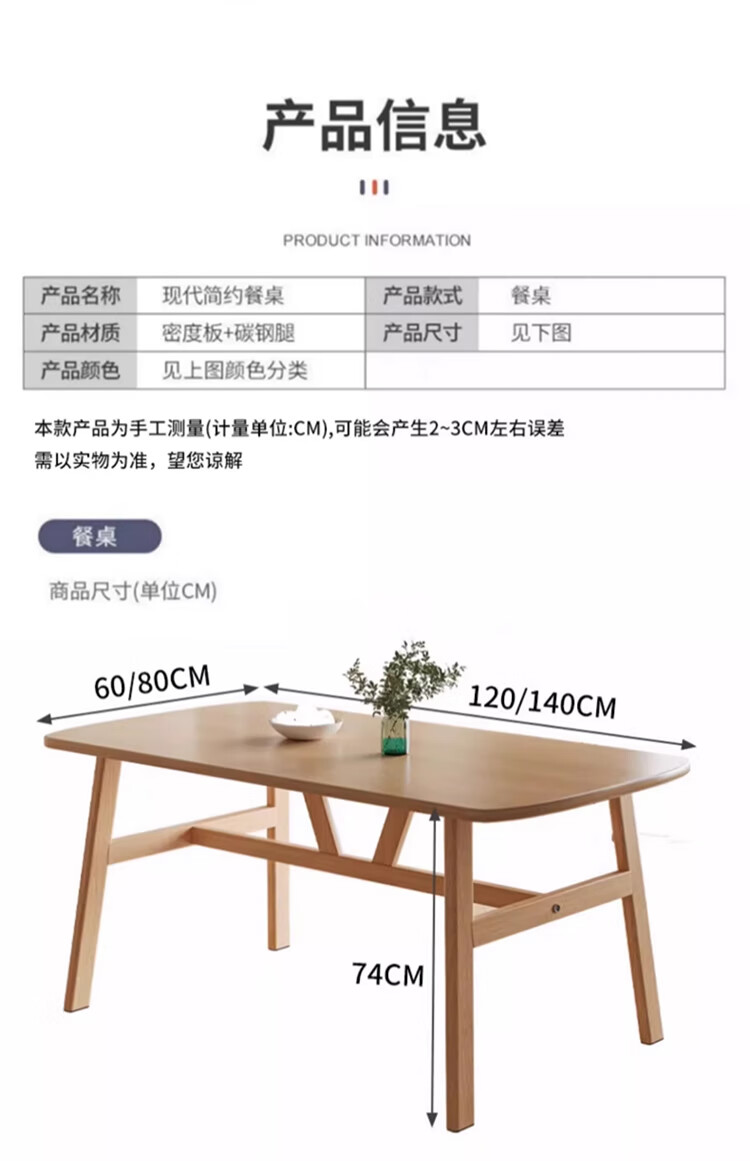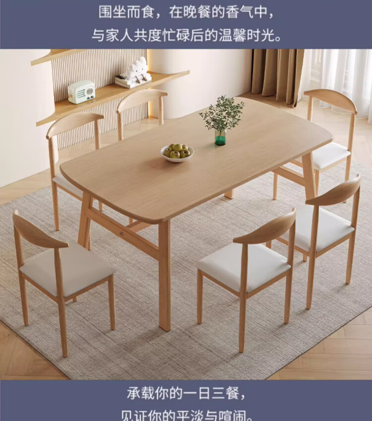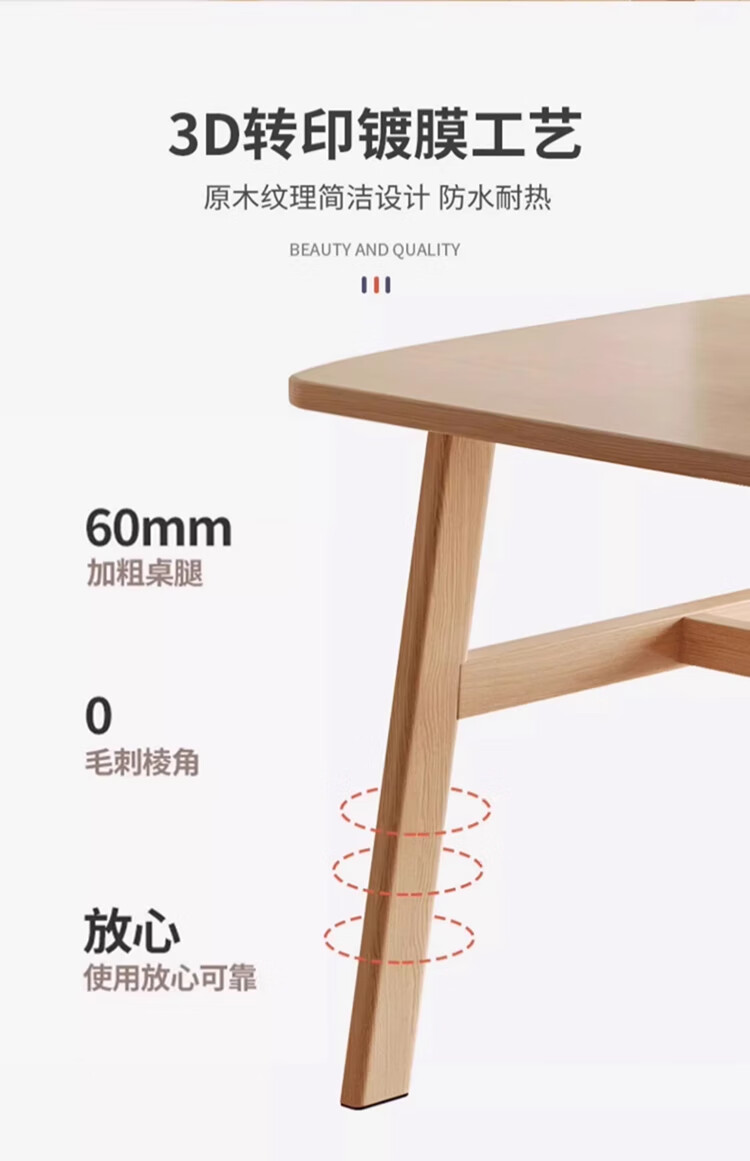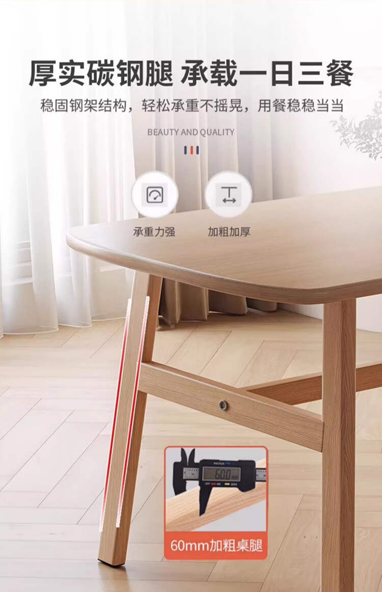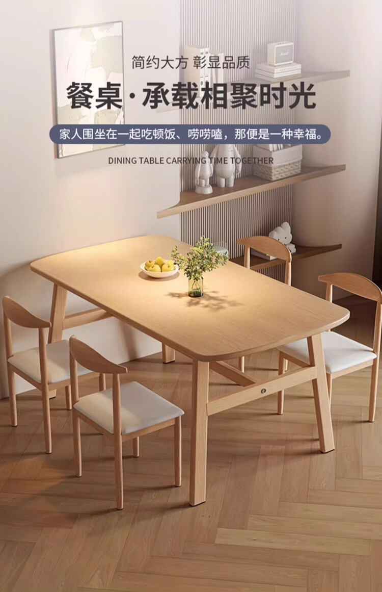 餐桌椅组合家用小户型桌子吃饭桌仿实木长方形快餐桌椅公寓出租屋 120*60原木色+4把餐椅