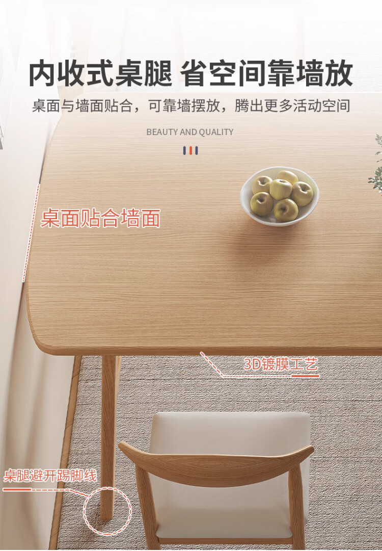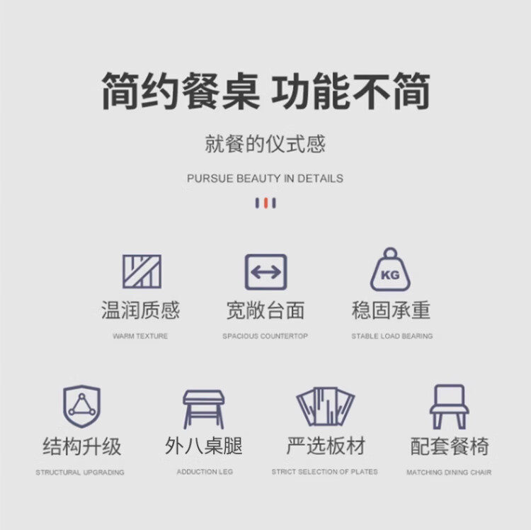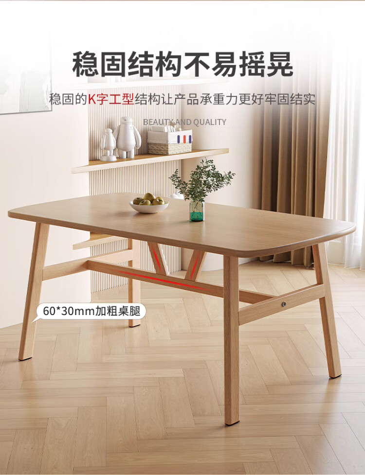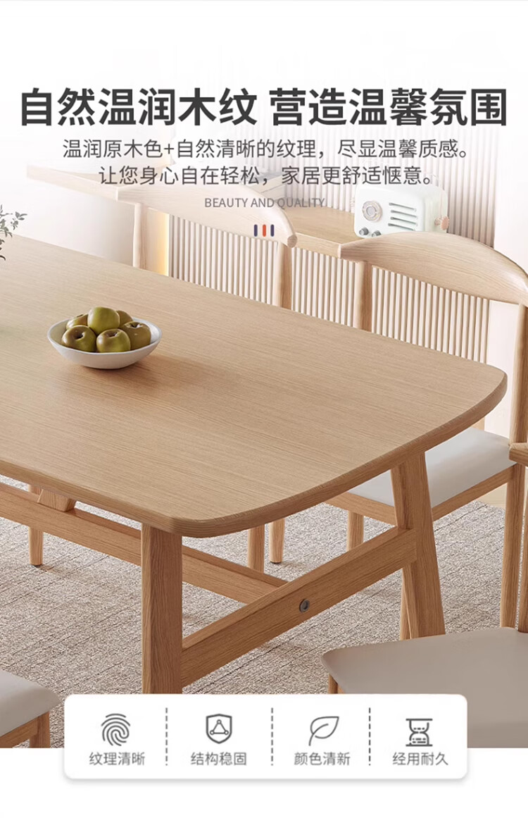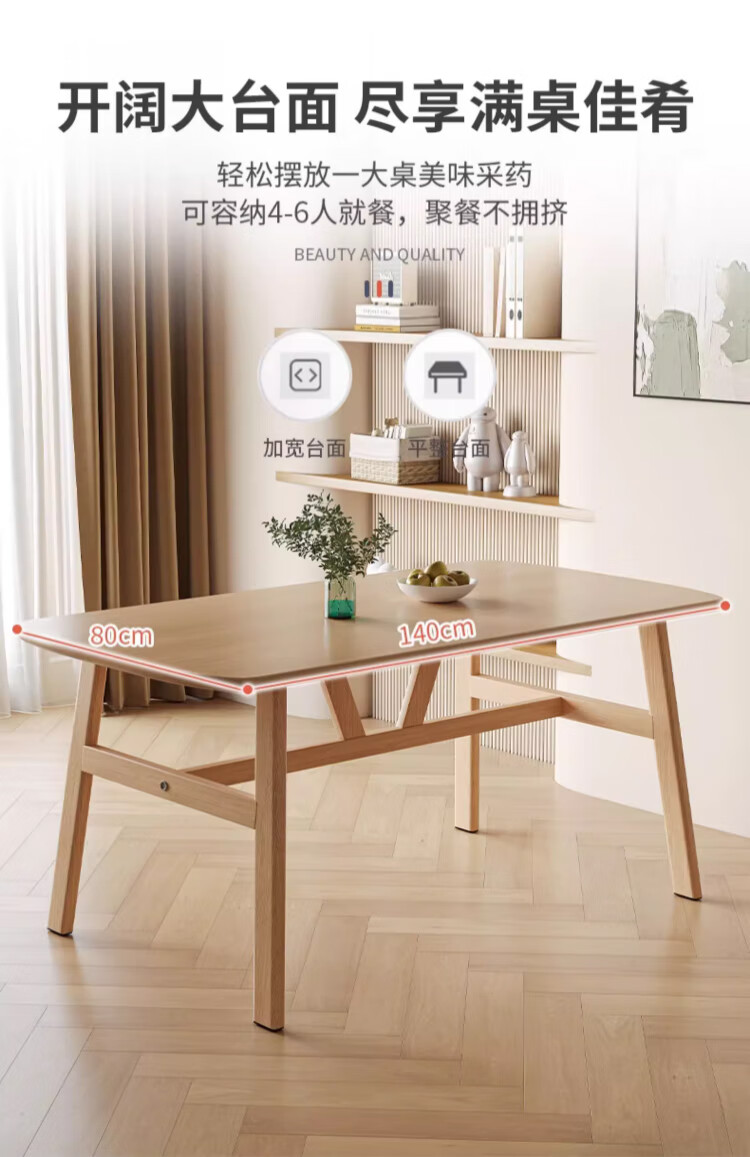 餐桌椅组合家用小户型桌子吃饭桌仿实木长方形快餐桌椅公寓出租屋 120*60原木色+4把餐椅