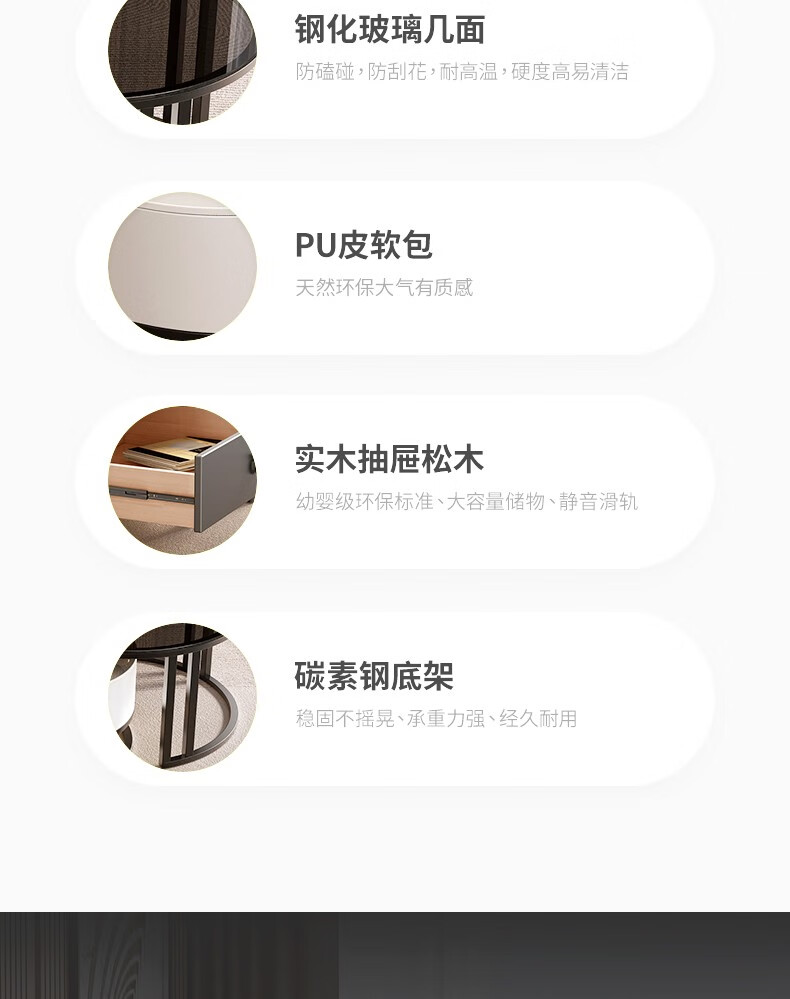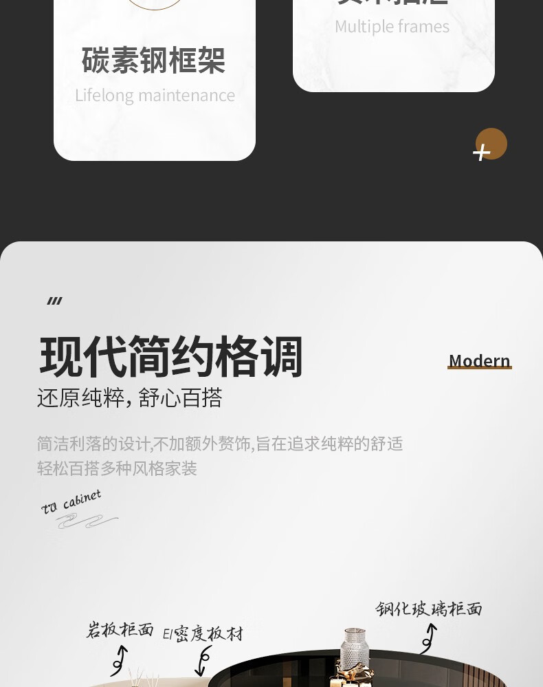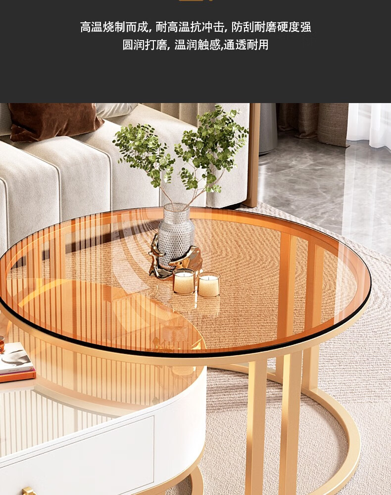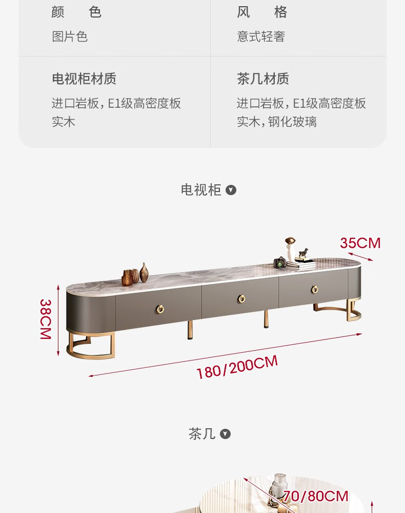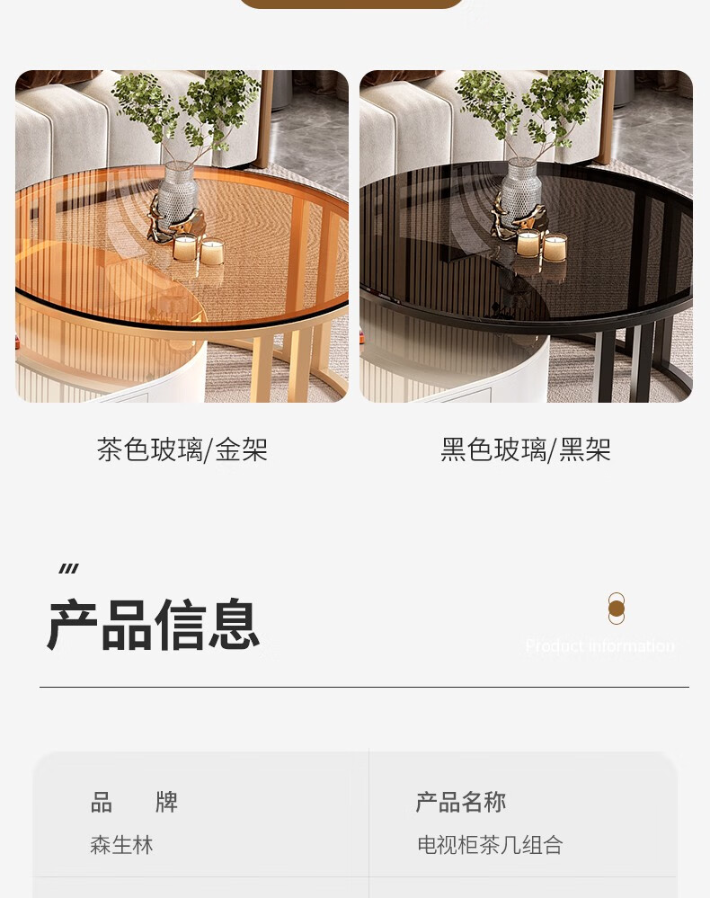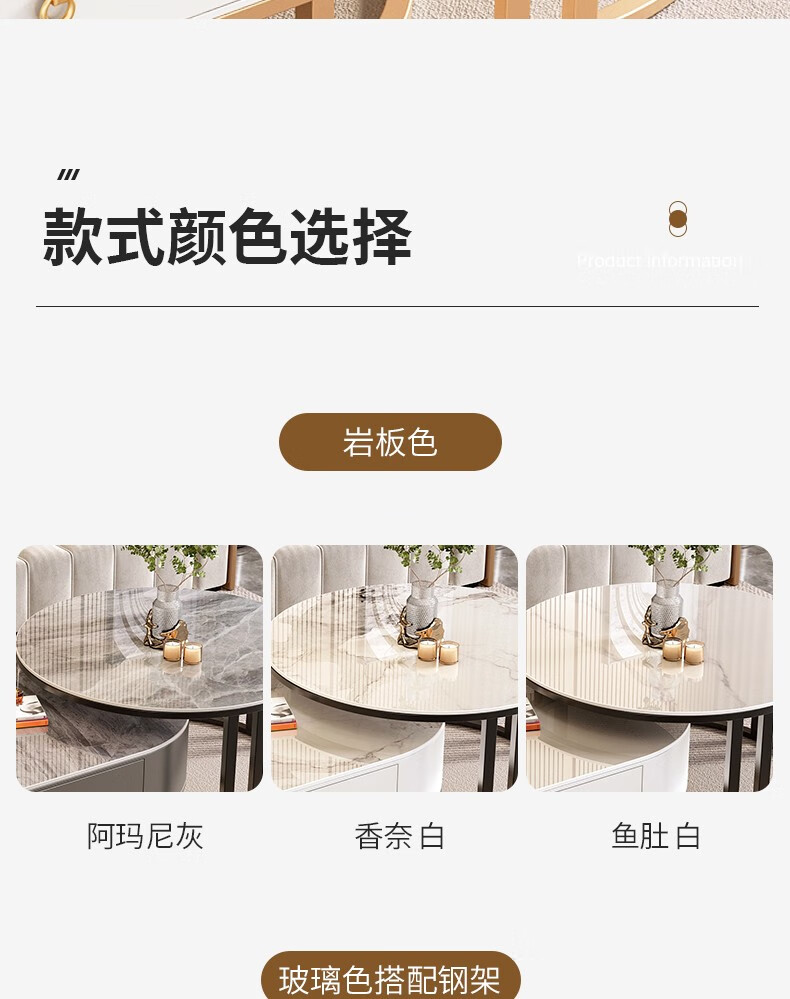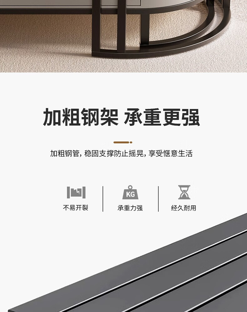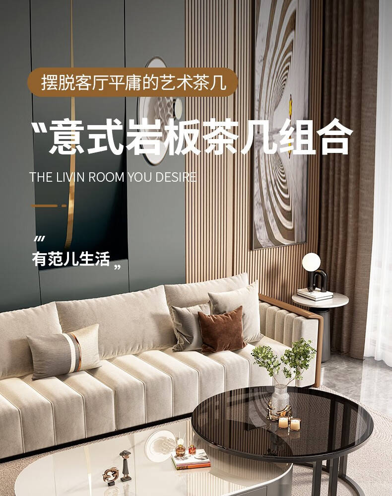 岩板茶几客厅小户型简约轻奢椭圆形可伸缩茶桌 C14-1黑架灰箱 雪山白+黑玻 120cm椭圆茶几+80cm小圆边几